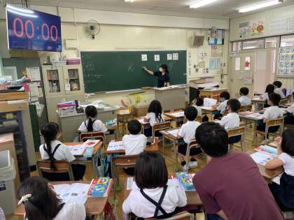 カタカナの学習をしています。文字の線の向きも丁寧に指導します。