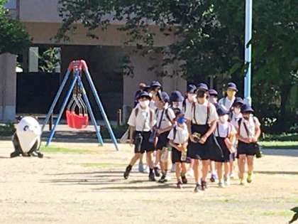 班長さんが、周りを気にしたり、低学年の子どもたちの歩調に合わせて歩いてくれています。