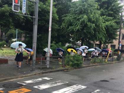 土曜日で、しかもあいにくの雨なので、少し憂鬱かもしれませんね。いつもより、あいさつの声が小さかったようです。しかたないですね。