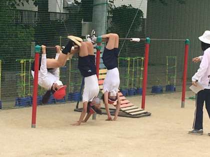 逆上り、コウモリなど、できる子は簡単そうですが、苦手な子にはなかなかの難度です。