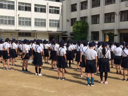 暑さ全開ですが、みんな元気にあいさつをして朝会を始めました。学校長からは、先週末の新聞の投稿欄に掲載されていたおじいさんのお話がありました。おじいさんがバスを待っている時、知らない小学生から「こんにちは!」と声をかけてもらって、とっても嬉しくなりました。精神的に落ち込んでいた気分が一度に晴れて、スーパーで久しぶりにビールを買った、という内容でした。