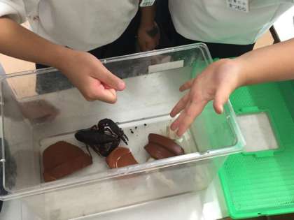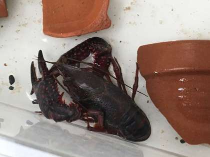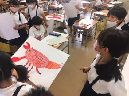 2年生でザリガニを飼育しています。毎日「ザリガニのエサ」をあげて観察をしています。名前は「たまちゃん」だそうです。