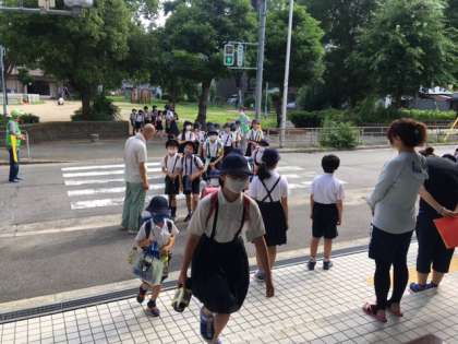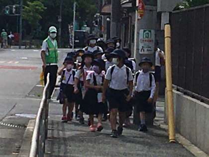見守り隊の方々プラス、児童会の運営委員の児童が玄関で登校してくるみんなにあいさつをしてくれています。