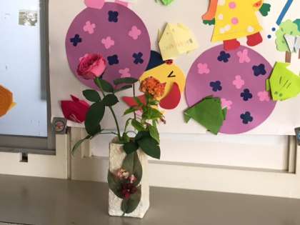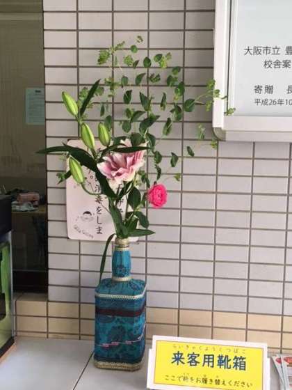 地域の方が、お花を替えてくださいました。玄関、事務室前、いきいき教室前、校長室前に色々なきれいなお花を生けてくださいました。