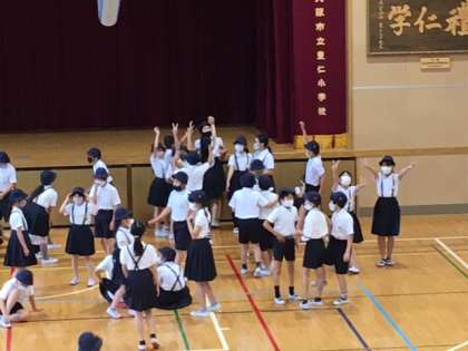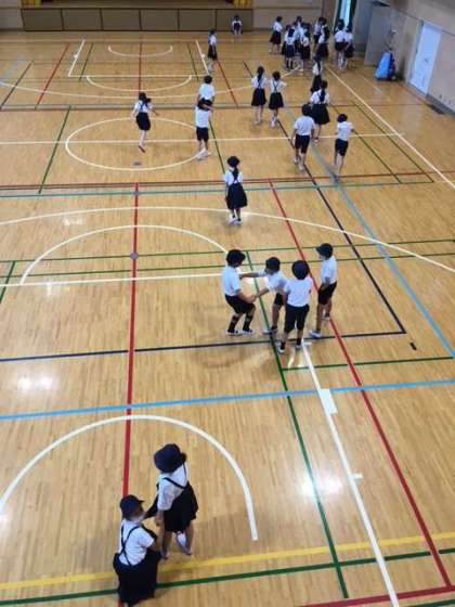 今日は雨天のため、運動場で遊べません。木曜日昼休みの体育館優先は5年生なので、みんな遊びで何をするか相談しています。