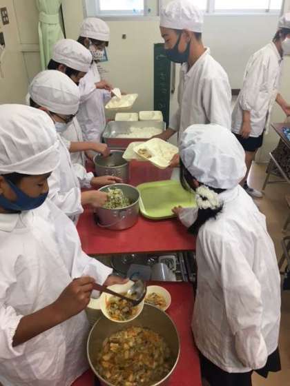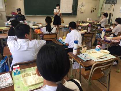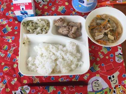 今日の給食献立は、ごはん・鶏肉の醤油マヨネーズ焼き・切干大根の柚子の香和え・五目汁・牛乳です。