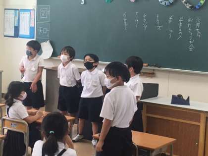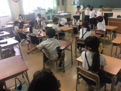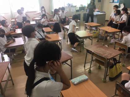 クイズ係は、いろんなクイズを出してくれています。「カメレオンは死ぬと透明になります!」という問題に、ほとんどの子が「その通り!」に手を挙げたのには驚きました。正解は、案の定、「まちがい」でした!