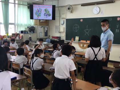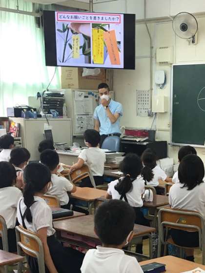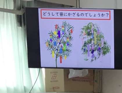 3年生の教室では、七夕についての学習をしていました。由来や、飾り物一つずつの意味、行事食がそうめんであることなど、全てに意味があることを知りました。