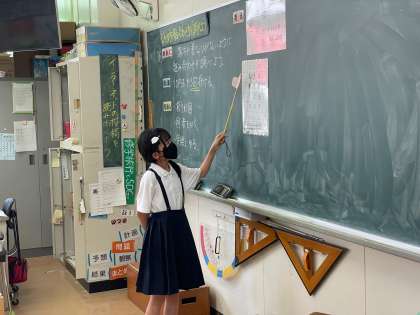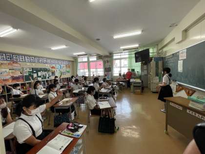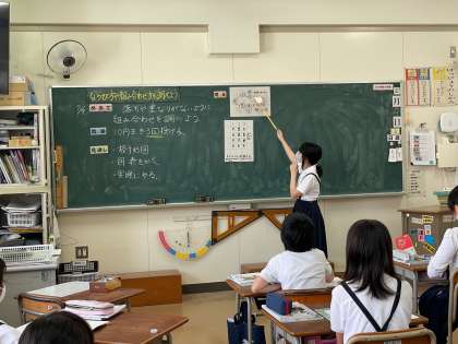 習熟度別3分割で学習を進めています。このグループでは、問題を考えるとき自分に合った考え方で学習をすすめるとよいことを学んでいました。当たった人は自分の考えをみんなの前でしっかり発表していました。みんなは発表された内容が自分の考えと同じかどうかを考えながら聞いていました。いい学びができています。