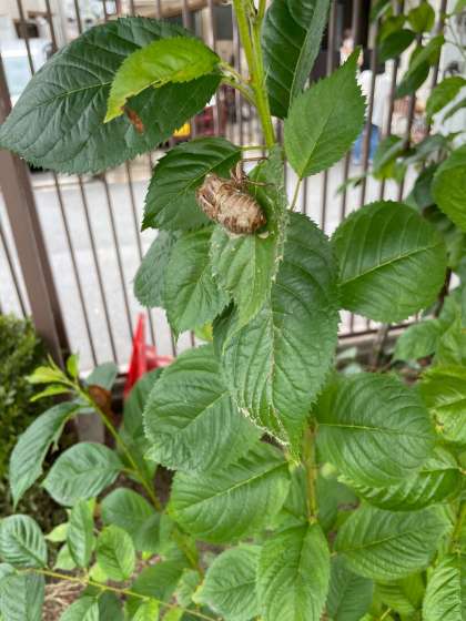 雨上がりの校庭を見ていると枝に奇妙なものがついています。