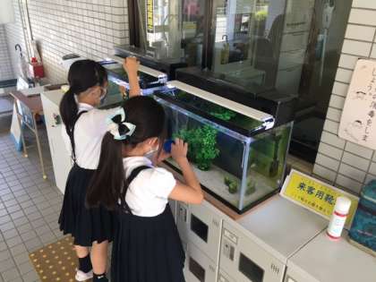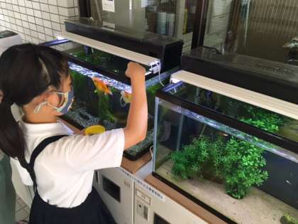 エサやりと水槽の掃除は、主に管理作業員さんがこまめにしてくれています。ちょくちょく、いきものがかりさんが登場してエサをあげてくれます。