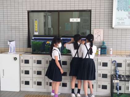 金魚・グッピー・えびは玄関で元気に暮らしています。
