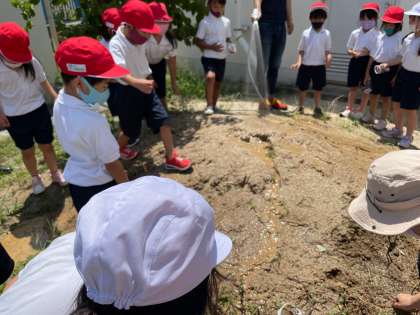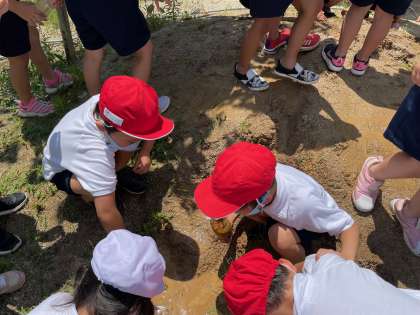 はじめは泥を嫌がっていた子も腕ごと泥の池に入ったりとだんだんダイナミックなふれあいに進化しています。暑さにも負けず1時間泥と水に親しむことができました。