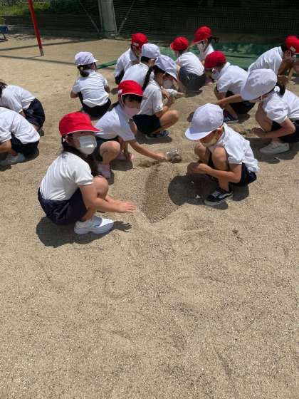 山を作ったり、砂の成分を見てみたりとそれぞれにふれあいを楽しんでいます。
