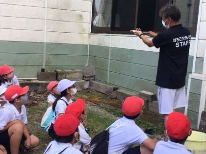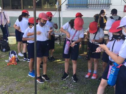「ごめんなさい」と言いながら恐る恐る串を刺す子どもたち。