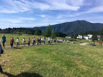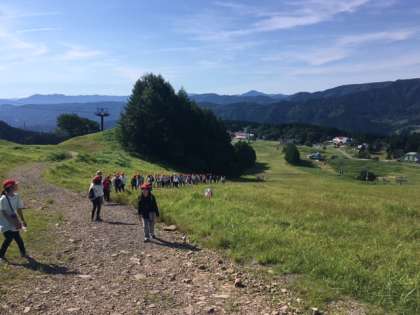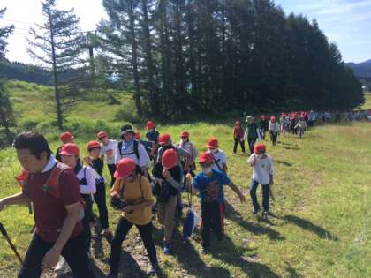 遅れをとる子は、班の仲間がサポートして、ゆっくりでも一緒に登ります。