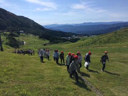 中腹です。 景色がだいぶと壮大になってきました! 遅れる子を支えながら、登ります。