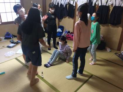 女子の部屋では、なんと「かごめかごめ」をしていました。昭和の時代と全く同じ内容に、びっくりしました!唄も動きもルールもそのまま。昔の遊びがこんなに完璧に残し続けられていることに、なんかを調査してみたい気分にもなりました。
