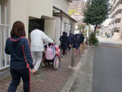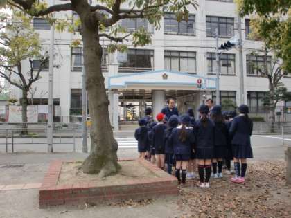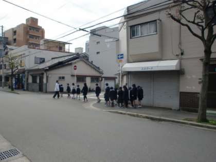 地域子ども会の登校班ごとに実際の道路を歩いて注意点を確認しました。