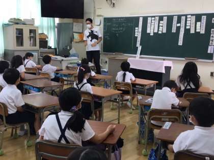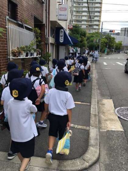 今日は1年生の町探検です。