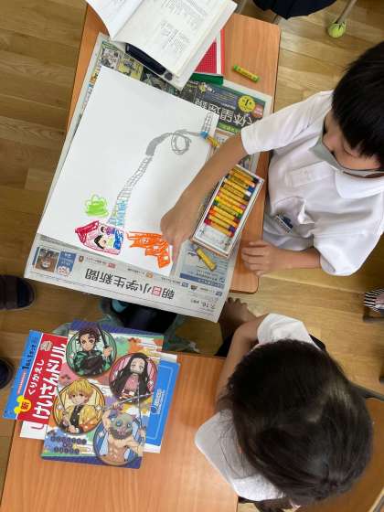話したい事、聞きたい事、思ったことを絵に表現しました。それぞれの感性を画用紙の上にパスで表現しました。