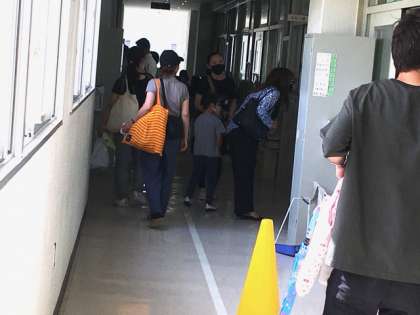 午前9時から体育館で説明会を行い、その後、2時間めの授業を見学していただきました。約30家族の方々がお越しになりました。熱心に授業の様子を見てくださり、廊下を歩いていると色んな質問をしてくださいました。