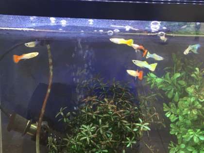 玄関の金魚とグッピー・エビの仲間に、今日、たくさんのグッピーが新規参入しました。