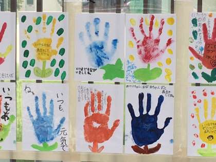 3年生の作品は、学校玄関に向かって左側に掲示しました。