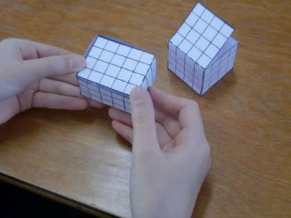 立方体屋直方体の体積を求める学習です。今日は、1センチメートルの方眼紙を切って立方体と直方体を作らせ、実感をもたせるようにしました。
