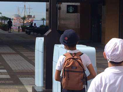 館の前でトイレ休憩をしている間に、サンタマリア号が見えました!