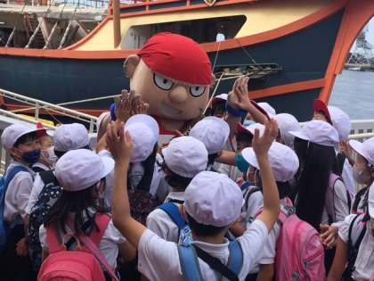 サンタマリア号に乗船する前に、記念写真を撮ってくれました。この写真は、記録用らしくてくれません。残念。