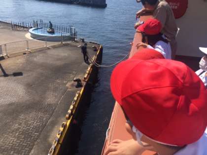 12時ジャストに出航しました。繋げていたロープをはずすと、船はゆっくりと岸壁を離れました。