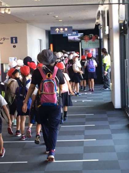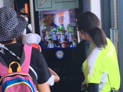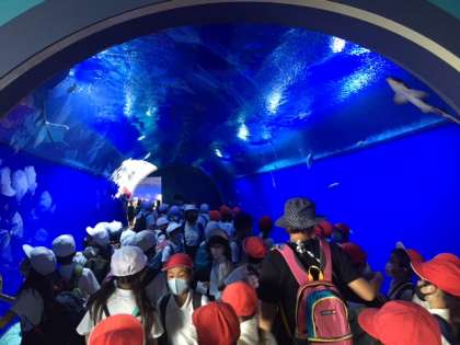 いよいよ今日のメインコース、海遊館に入館しました。最新っぽい検温機を通って、まずお魚水槽をくぐっていきます。
