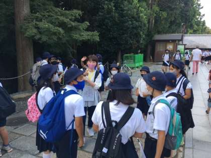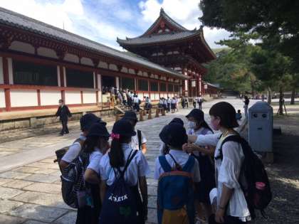 東大寺大仏殿前がゴールです。最後のチェックポイントでは、班員全員が声を出さずに、誕生日順に並ぶという難題です。