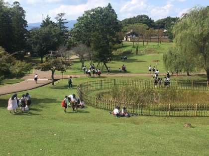 ようやくお弁当タイムです。時間があまりありませんが、芝生の上で、気持ちのいいランチです。