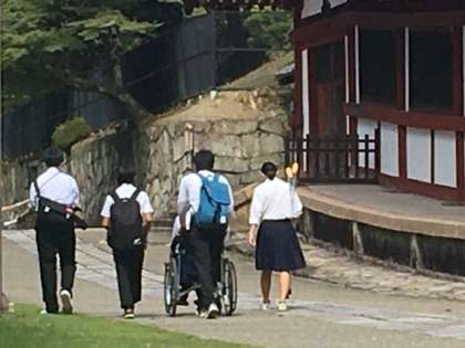 どこかの高校の修学旅行でしょう。班で見学してるんでしょうね。