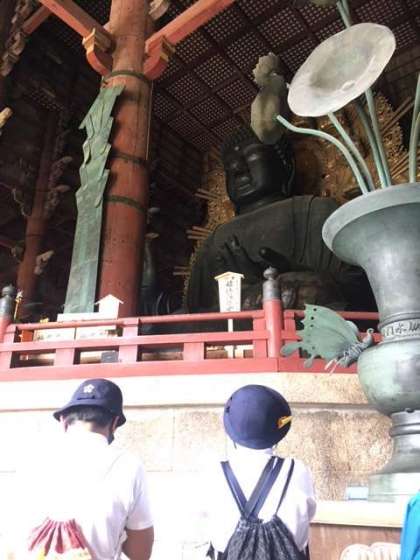 入った時は、その暗さに目が慣れず通り過ぎていきましたが、一周して大仏様の前に戻ると、その大きさに改めて感じ入ります。