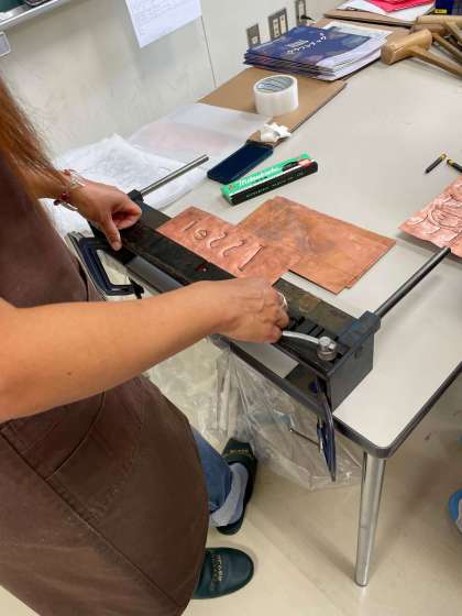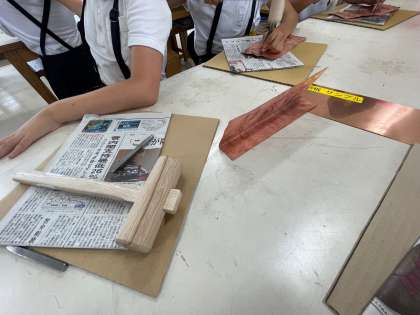 後はひたすらたたきます。その後折り曲げ機でプレートが立つように立つようにします。いいものが出来上がりました。