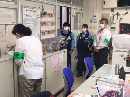 給食タイムに、大淀警察署から4名の警察官が来られました。子どもたちに、「防犯」すなわち、自分の身を守るために気をつけることについて、放送で話してくださいました。