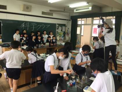「科学クラブ」は、「色水タワー」づくりです。試験管に色水を上手く層にできるかがテクニックの要るところですね。きれいなタワーにできたかな!
