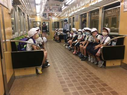 電車が空いていたので、座らせてもらいました。 喋らずに、お行儀よく座っています。 えらいねぇ!