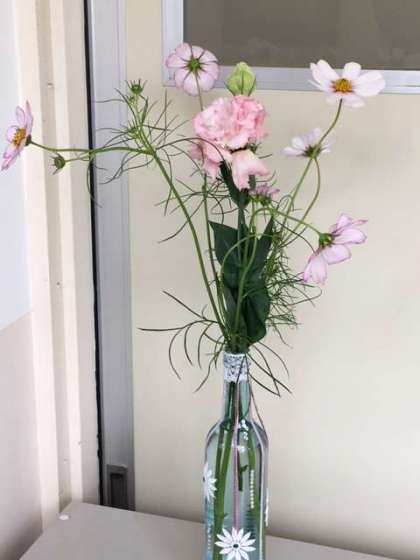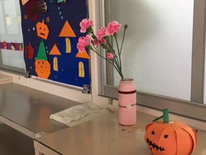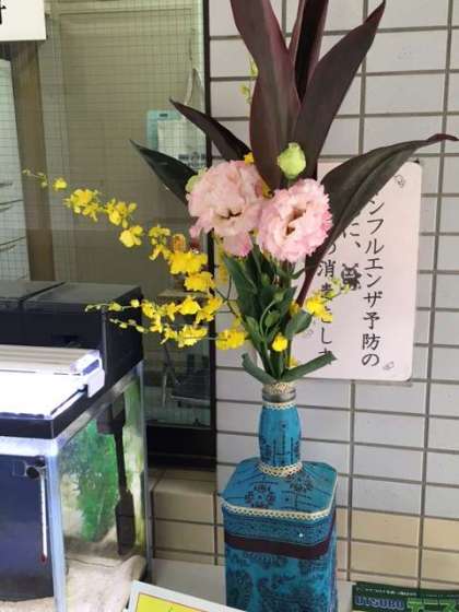 今月も綺麗な花が生けられました。玄関、事務室前、いきいき教室前、校長室前です。