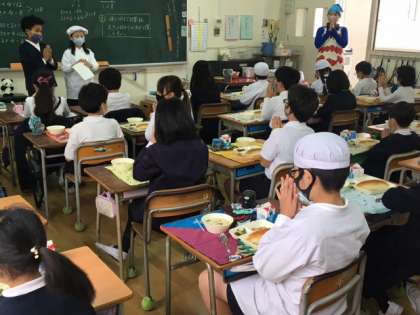 今日の給食献立は、おさつパン・白菜のクリーム煮・厚揚げのごま醤油かけ・豚肉と三度豆のオイスターソース炒め・牛乳です。
