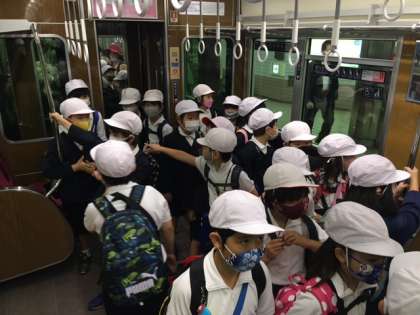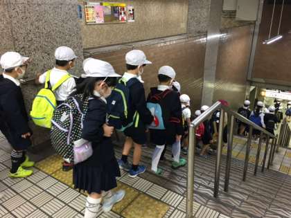 今日は2年生の校外学習です。行き先は大阪城公園です。快晴、遠足日和です。