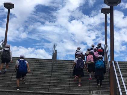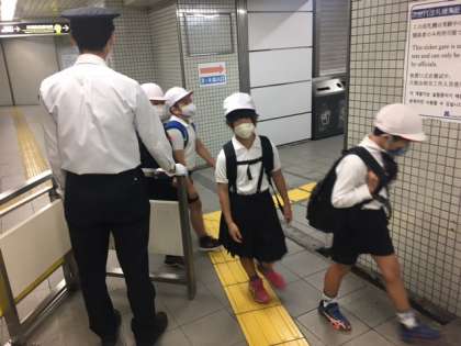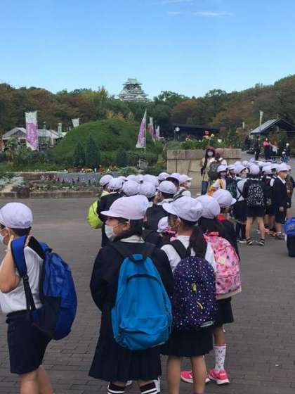 森ノ宮駅からは、直接公園に出ました。駅員さんに、「こんにちは!」とあいさつをする子がたくさんいます。