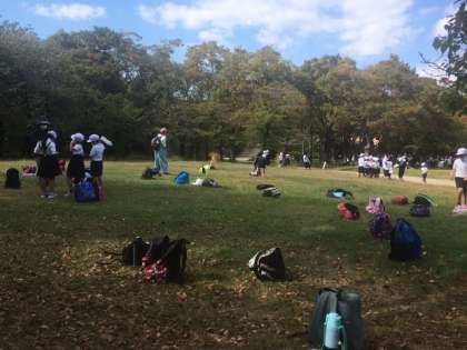 走り続けることから、さすがになんでしょう。虫とりや、落ち葉集めなど、それぞれの遊び方をするもんですね。遊具がなくても、みんな、とっても楽しい時間を過ごしています。