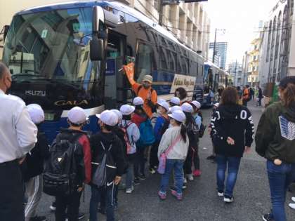 豊仁小学校の子どもたち約140人が参加します。観光バス3台を連ねての行き先は、みかんの産地、和歌山の有田です。食べ放題のみかん狩りをして、その後、「稲村の火の館」で防災学習をします。旅館でちょっといい昼食をとった後は移動して、安珍・清姫伝説で有名な道成寺を訪ねて絵解き法話を聞かせていただきます。
