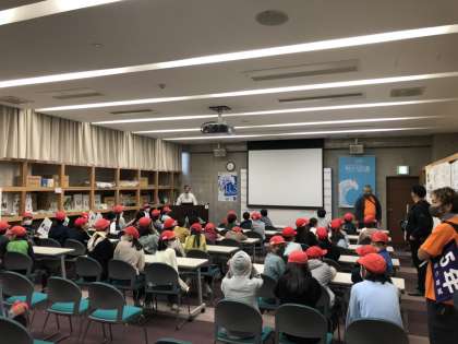 みんな、お腹の中はみかんでいっぱいで眠気もあったと思いますが、一生懸命津波や防災について学んでいました。