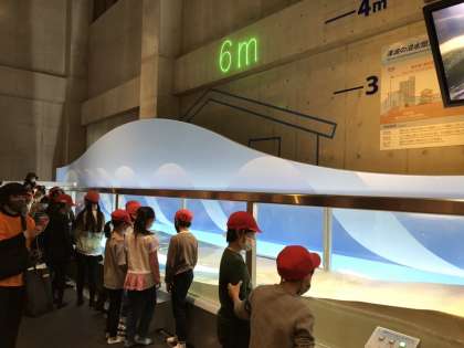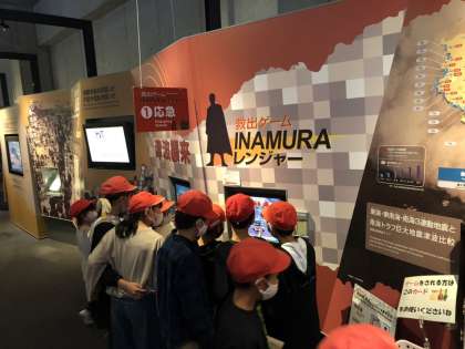 3Dシアター 、ガイダンス 、体験(救出ゲーム等)を行ない、津波について、そして稲村の火と歴史について学びました。