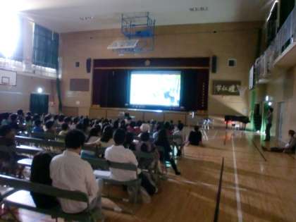 そのあと、豊仁小学校の講堂で映画を見ました。